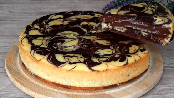 Ako volite čokoladu onda ne smete da preskočite ovu tortu. Mekani patišpanj napunjen istopljenom čokoladom je poslastica koja će probuditi sva vaša čula. Treba vam manje od sat vremena i za pripremu i za pečenje. Kombinacija za pravljenje ove torte ima milion. Možete da sipate prvo beli fil, pa čokoladu, pa crni fil. Da prošarate kao na slici, ili prvo crni pa beli. Izbora ima dosta, a na vama je da odlučite kako želite da izgleda.