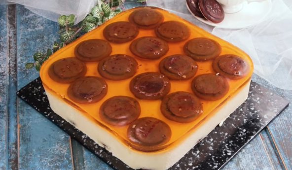 Dno kalupa obložite pek papirom i poređajte jafa keks. Jaja umutite sa šećerom i vanilin šećerom. Dodajte mrvljeni sir i puding od vanile, pa nastavite da mutite. Na kraju sipajte slatku pavlaku i dobro sjedinite mikserom. Sipajte preko jafe i malo poravnajte i pecite na 180°C oko 30 minuta. Poređajte jafa keks preko. Želatin rastovrite u vodu i dodajte par kapi arome pomorandže. Prelijte preko keksa, pa ostavite u frižideru sat vremena.