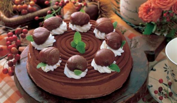 1. Umutite žumanca sa šećerom u prahu, dodajte mleveni badem, 300 g kesten-pirea i ulupan čvrst sneg od belanaca.