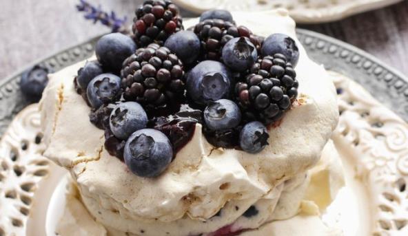 9. Borovnice zagrejte sa 4 kašike šećera, da se šećer rastopi. Ovim sirupom od borovnica prelijte svako parče torte pre služenja.
