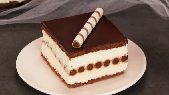 U četvrtast kalup sa obručem koji se skida poređajte čokoladni keks na dno. Maskarpone sir umutite sa šećerom u prahu i aromom vanile. Sipajte slatku pavlaku pa sve dobro umutite. Pola fila sipajte preko keksa. Poravnajte. Poređajte čokoladne rolere pa stavite drugu polovinu fila. ponovo poravnajte i poređajte ostatak keksa. Stavite u frižider na 2h. Nakon toga skinite obruč i isecite tortu.