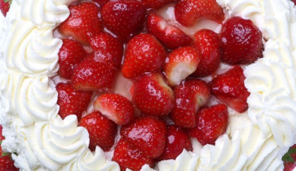 2. Umutiti pavlaku i dodati naseckane jagode, a nekoliko jagoda ostaviti za dekoraciju. Preko stegnute čokolade naneti šlag i dekorisati celim jagodama. Tortu