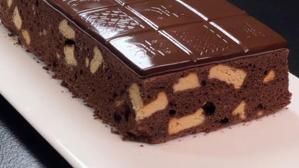 Jaja umutite penasto sa šećerom, pa dodajte prosejano brašno, skrob i kakao. Dobro sjedinite smesu, pa sipajte ulje i promešajte. Na kraju dodajte keks koji ste izdrobili i promešajte. Sipajte u kalup koji ste obložili pek papirom i koji ste malo nauljili. Sipajte smesu, poravnajte i pecite na 170°C oko 35 minuta. Izvadite, preko stavite celu čokoladu i vratite u rernu koja je vrela, ali koju ste isključili na još 5-10 minuta.