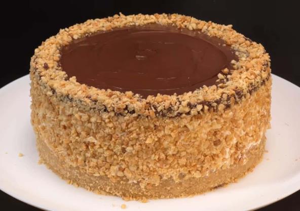 Penasto umutite puter sobne temeprature, pa dodajte u prvi fil, koji ste prehtodno umutili. Zatim u tu smesu dodajte drugi umućeni i ohlađeni fil, pa sjedinite mikserom. Obe kore presecite na 2 dela, pa prvu premažite filom, pospite karamelizovane lešnike, pa opet kora i tako dok ne utrošite sve. Poslednju koru premažite filom, a ivicu torte pospite karamelizovanim lešnikom. Otopite čokoladu sa slatkom pavlakom i prelijte preko vrha torte. Stavite u frižider na par sati i onda služite.