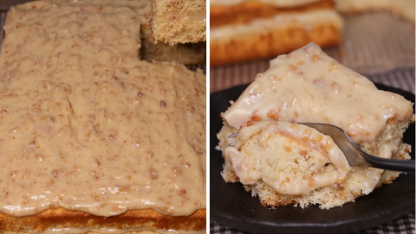 Kako biste napravili ovu tortu, prvo mikserom umutite jaja i šećer, pa dodajte pšenično brašno i dobro izmešajte. Dodajte ključalo mleko i ponovo izmešajte, dodati kikiriki, prašak za pecivo i ponovo izmešajte.
