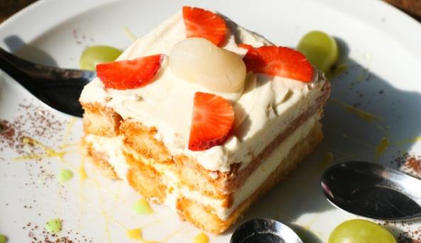 3. Ohladite 2-3 sata kolač u frižideru, pa ga prekrijte umućenom slatkom pavlakom. Ukrasite voćem, listićma badema ili rendanom čokoladom.