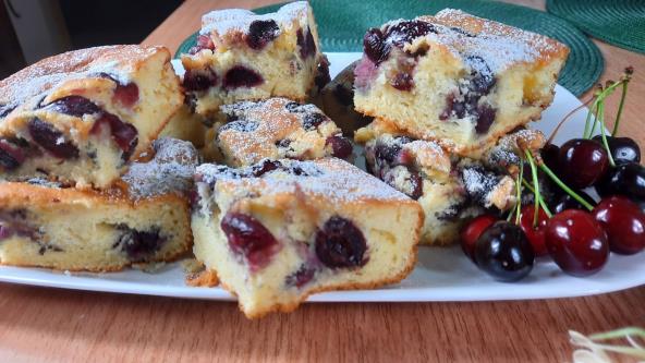 Kada smo bili mali, ovaj kolač nam je svima bio miljeni. Jeli smo ga kada se vratimo umorni sa igrališta. Obično se pravio sa višnjama, ali i ovaj sa trešnjama je jednako dobra.