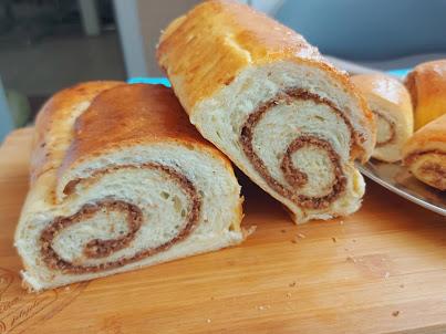 Pomešajte vodu, šećer i kvasac. Ostavite da odmori par minuta, pa dodajte mleko i jogurt, maslac, jaje, brašno, koricu limuna i so. Umesite glatko testo. Ostavite da odstoji pola sata, pa razvucite na debljinu od 0,5 cm. Premažite sa malo džema i pospite orasima. Uvijte u rolat i stavite u podmazan pleh. Pokrijte da odmara nekih 15 minuta. Premažite žumancetom i pecite na 40-50 minuta na 180°C. Pokrijte krpom i sačekajte da se ohladi.