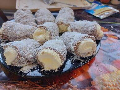 Iseći nožem najpre po sredini na dužem delu pa po širini na trake. Špatunom polako podići početni deo pa uviti male rolate. Pri uvijanju malo puca ali tako mora pa pospite kokosom preko toga. Ređati u tacnu i ohladiti.