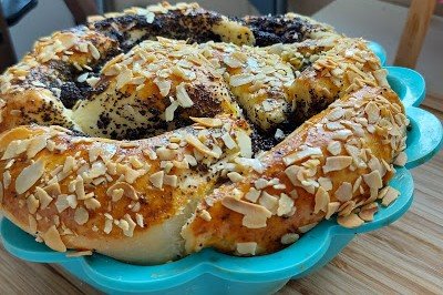 U mlako mleko izmrviti kvasac i dodati šećer. Kad zapeni dodati jaje, koricu limuna i ulje a zatim dodavati brašno i zamesiti srednje tvrdo testo. Pokriti da testo odmori. Mak samleti dodati malo mleka i šećera po želji. Suvo grožđe potopiti u rum.