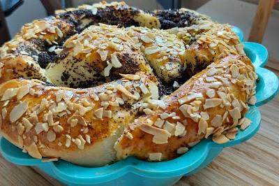 Testo razviti u krug, pa iseći na osmine. Na svaku osminu staviti punu kašiku maka pa pritisnuti rukom. Ostatak staviti na sredinu. Savijati svaku osmenu prema sredinu i formirati cvet kao u Videu.