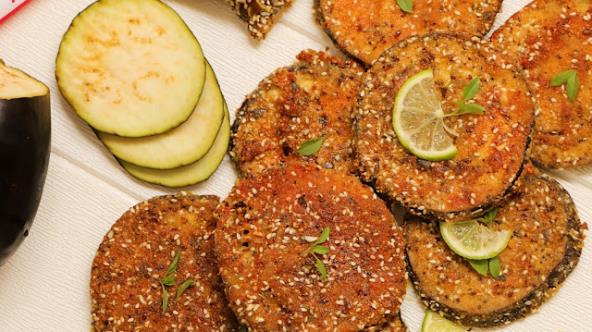 Isecite patlidžan na kolutove ili po dužini, posolite ga. Pripremite 4 posudice ili tanjira. U jednom umutite jaja, pa dodajte kašiku ulja i posolite. U drugi stavite brašno, u treći prezle, a u četvrtom pomešajte semenke. Semenke možete da stavite i u prezle.