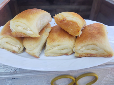 U mlako mleko dodajte kvasac i šećer, promešajte i ostavite 15 minuta da nadođe. Zatim dodajte brašno, so i mast. Umesite testo, pa pokrijte i ostavite da odstoji pola sata. Testo razvucite, pa premažite sirom koji ste sjedinili sa jajima. Isecite na 3 dela i svaki urolajte. Zatim isecite parčiće po želji i umočite svaki u istopljeni margarin. Ređajte u pleh obložen pek papirom. Na kraju premažite umućenim jajetom i pecite na 180°C nekih 30 minuta.