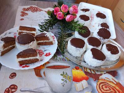 Skuvati puding zasladiti po želji pa ohladiti. Maslac umutiti sa malo šećera pa ubaciti u hladan puding i izmešati. Mazati sa dosta krema izrezan biskvit i lepiti sa drugim praznim. Namazati krem i spolja pa uvaljati u kokos. Čokoladu istopiti dodati ulje izmešati i preliti kapice. Ostaviti da se stegnu i sladiti se.
