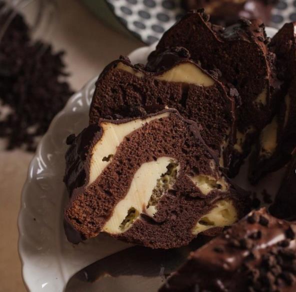 Za čokoladni deo umutiti jaja, šećer i vanilin šećer nekih 10ak minuta da se smesa udvostruči. Zatim dodati mleko i ulje. Brašno, kakao i prašak za pecivo zasebno umutiti i postepeno dodati u smesu. Smesu mutiti samo onoliko da se sjedini, ne treba premutiti.