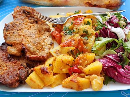 Meso sa krompirićima je sinonim za nedeljni ručak. Još kad uz to dodate domaću supu sa rezancima ili knedlama i sezonsku salatu obrok je kompletan. Za pripremu ovog jela nećete morati da stojite dugo pored šporeta jer se sve sprema u rerni.