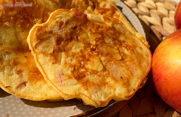 Američke palačinke se razlikuju od naših po teksturi. One su manje, deblje, testo je gušće, ali su dosta mekane kada ih zagrizete. U smesu za palačinke dodajte i jabuke i napravićete fantastičan desert koji može da posluži i kao obrok. Bez obzira što sadrže seckano voće, možete da ih premažete eurokremom ili džemom