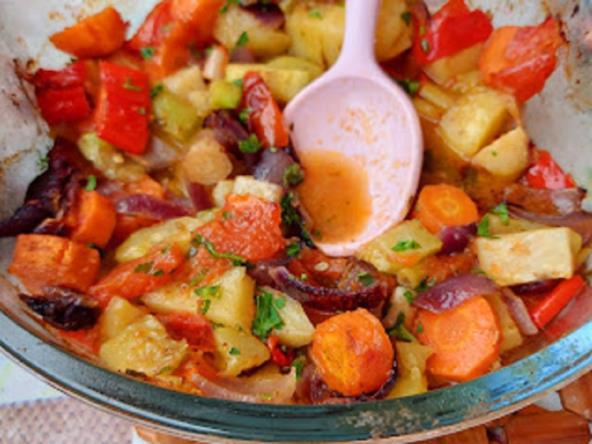 Ako se pridržavate Uskršnjeg posta i ne znate šta da spremate, mi vam predlažemo fantastičan baka Jelin recept. Tepsija puna raznovrsnog povrća osim što je ukusna, puna je i vitamina. Sprema se bez puno muke, jer samo treba da isečete povrće i zapečete ga u rerni. Nema stajanja pored šporeta ili previše prljavih sudova. Možete da poslužite sa ribom, ako vam samo povrće nije dovoljno.