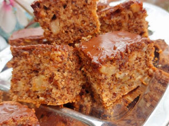 Umutite jaja sa šećerom, pa dodajte griz sa praškom za pecivo. Sameljite keksa sa orasima, pa dodajte u jaja. Sipajte ulje, mleko i jabuke iseckane na kockice. Sve dobro sjedinite. Pleh dimenzija 30x18 cm nauljite i pospite brašnom. Sipajte testo i poravnajte. Pecite na 200°C oko 45-50 minuta. Gotov kolač prelijte istopljenom čokoladnom.