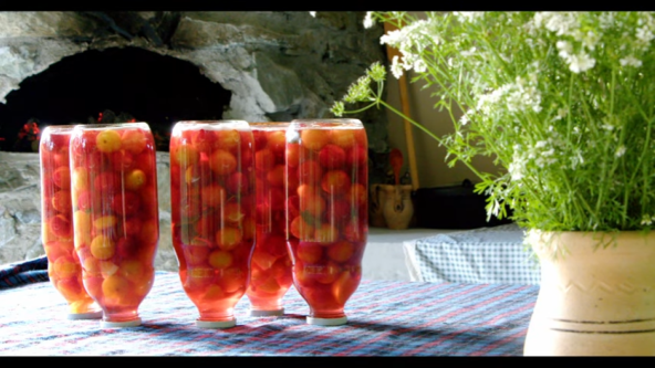 Flaše dobro sterilišite, a voće dobro operite. Puniti flaše skoro do vrha, u svaku ubaciti malo seckanog limuna i 3 kašike šećera, napuniti vodom i zatvorit. Poređati flaše u veliku šerpu pa ubaciti u rernu na 120 stepeni oko sat vremena. Kada ih izvadite iz rerne, obavezno okrenuti naopačke i ostaviti da se ohlade.