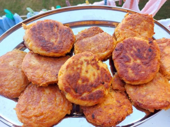 Meso i krompir skuvati pa samleti u secku. Dodati 1 jaje i jedno žumance ( belance ostaviti), luk crni i beli iseckati pa ubaciti, kačkavalj takođe. Dodati papriku biber, začin, so i sve umešati. Praviti male pljeskavice, umočitti u belance i pržiti da zarumene. Vaditi na papirni ubrus.