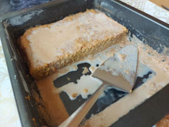 Umutiti jaja sa šećerom, dodati griz i izjednačiti. Pleh podmazati uljem i posutu brašnom. Sipati i izjednačiti. Peći na 200 stepeni oko 15 minuta. Dok se peče skuvati mleko, zasladiti po želji, dodati izlomljenu mlečnu čokoladu i vanilin šećer. Vruć koh preliti sa vrućom čokoladom i ostaviti da upije i malo se prohladi.
