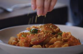 BRZA PASTA S KARFIOLOM: Testenina u bogatom sosu sa hrskavom slaninicom, posuta tradicionalnim italijanskim sastojkom