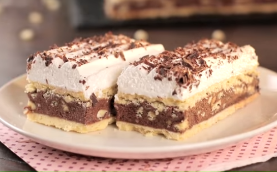 Pomešajte brašno, šećer u prahu, so i vanilin šećer, pa dodajte puter sobne temeprature. Sjedinite rukama, pa dodajte žumanca i mleko. Umesite testo, pokrijte i ostavite u frižideru pola sata. Podelite na 3 jednaka dela, pa svaki razvucite u kvadrat dimenzija 30x30 cm. Pecite jedno po jedno testo u plehu obloženom pek papirom na 170°C oko 10 minuta. Testo pre pečenja izbockajte viljuškom. Jedno testo izmrvite, a 2 ostavite cela.