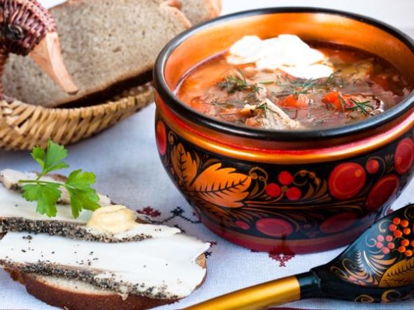 Ruski obrok počinje predjelom ili zakuskom, potom sledi supa, glavno jelo i desert.