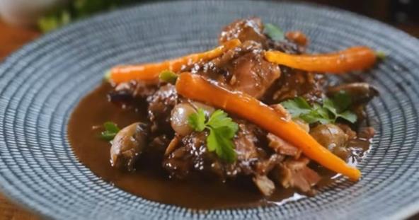 Francuzi su poznati po tome što savršeno kombinuju različite sastojke, a tako je i sa ovim čuvenim receptom za coq au vin ili piletinu u vinu. Piletina koja se sporo kuva postje nevevorvatno mekana i upija sos od vina i aromatičnog bilja, kao i slanine koja daje poseban šmek. Ali ono što ovaj recept razlikuje od ostalih je čokolada koja zajedno sa vinom daje tu slatkastu notu. Ako želite da obradujete porodicu i da napravite savršen nedeljeni ručak, naš predlog je sporo kuvana piletina u sosu od vina. Možete da je poslužite sa salatom i pire krompirom.
