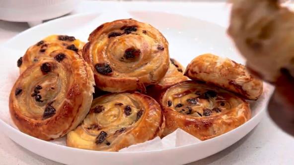 Ove rolnice sa suvim grožđem inspirisane su francuskim pecivom poznatim po hrskavom lisnatom testu i kremastom filu sa suvim grožđem. Brzo se prave i savršen su izbor za doručak ili popodnevnu užinu uz kafu.