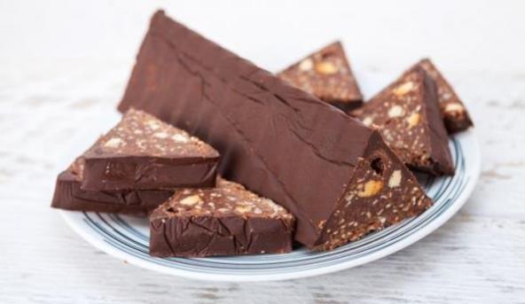 2. U šerpu sipati koka kolu, i na tihoj vatri uz neprestano mešanje otopiti margarin, čokoladu i šećer. Kad se sastojci dobro otope dodati orahe, keks i med.