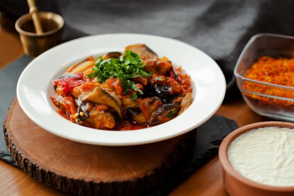 Tikvice, patlidžan, ljutu papriku, slatku papriku i crni luk isecite na kockice. Pasulj skuvajte ili koristite onaj iz konzerve, samo prethodno procedite. Povrće (sve sem ljute paprike i pasulja) dinstajte na laganoj temperaturi. Kada omekša i postane tečno dodajte paradajz sos, začine po želji i ljutu papriku. Dodajte i pasulj, pa poklopite i kuvajte još 20 minuta. Služite sa pavlakom i hlebom.