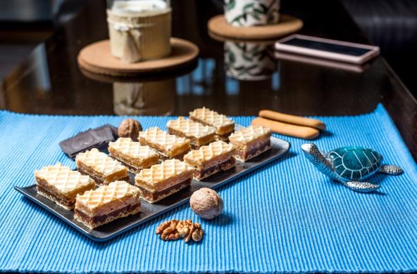 Otopite šećer, margarin i vodu. Kada proključa sklonite sa šporeta i dodajte mleveni keks, mlevene orahe i koricu narandže. Dobro promešajte smesu da se sve dobro sjedini, pa podelite na 2 jednaka dela. U jedan deo smese, dok je vruća, dodajte čokoladu i mešajte dok se ne otopi. Ostavite da se malo prohladi, pa filujte oblande. Oblanda, pa svetli fil, oblanda, pa tamni fil i tako dok ne utrošite sve sastojke. Preko stavite providnu ili aluminijumsku foliju i stavite neki teži predmet. Sačekajte da se ohladi.