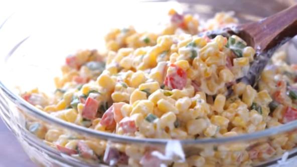 Skuvajte kukuruz, a papriku, luk i ljutu papričiciu isecite na sitne kockice. Pomešajte sve sastojke. U drugoj posudi pomešajte majonez, pavlaku, so, biber i beli luk u prahu. Sjedinite, pa sipajte preko povrća i promešajte. Dodajte secaknu mirđiju ili peršun i promešajte, pa ohladite u frižideru.