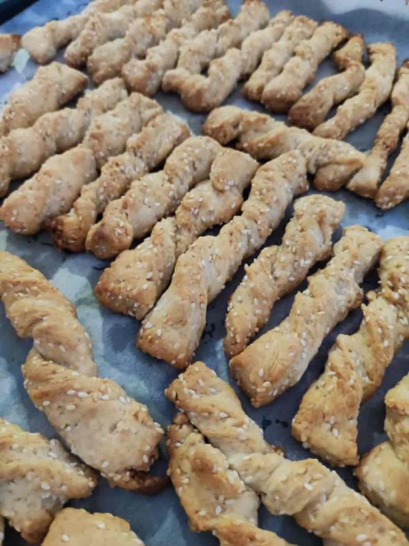 U posudi pomešajte brašno, prašak za pecivo, so i susam. Dodajte ulje i pivo i umesite testo. Zatim ga tanko razvucite oklagijom i isecite trake. Poređajte u pleh obložen pek papirom i pecite u zagrejanoj rerni na 200°C oko 15-20 minuta.