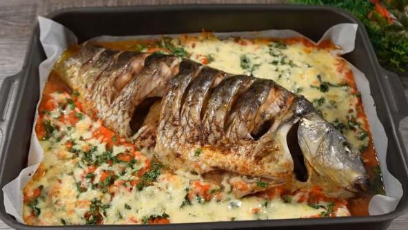Recept za pečenog šarana u crvenom sosu i sa sirom: