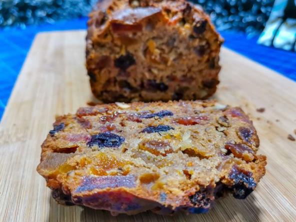 Iseckajte suvo voće, stavite u šerpu, nalijte vodom, stavite puter i šećer. Neka vri 3-4 minuta. Ohladite. Dodajte umućena jaja, brašno, prašak za pecivo, orašaste plodove, i začine po ukusu (cimet, muskatni orah, vanilin ekstrakt). Dodajte koru od limuna i pomorandže. Sve dobro promešajte, ulijte u pleh koji je obložen pek papriom.