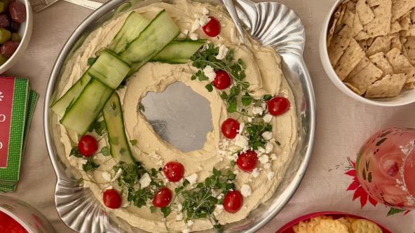 Na prazničnoj trpezi uvek ima mesta za predjelo koje je jednostavno, lepo na oko i lagano za stomak. Božićni venac od humusa i povrća ima baš takav efekat, izgleda svečano, a pravi se bez ikakvog napora.
