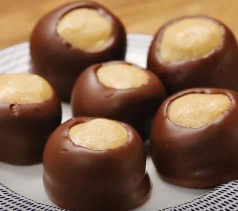 Čokoladne mrvice stavite u mikrotalasnu na 1 minut, s tim da ih trebate mešati svakih 15 sekundi. Izvadite kuglice iz zamrzivača i umočite u čokoladu uz pomoć čačkalica. Stavite ih na papir i sačekajte da se stegnu. Možete ih staviti u frižider ukoliko je potrebno.