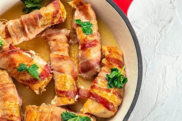 Pilećizalogaji umotani u slaninu imaju dozu slatkoće od sosa za roštilj i odličan su spoj različitih tekstura. Možda će vam koristiti i ovih 8 saveta profesionalaca za ukusniju piletinu. Pileći zalogaji umotani u slaninu se lako prave i brzinski nestaju sa tanjira. Evo recepta!