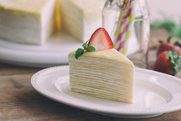 Tanke rozen kore obavijene su nežnim vanila kremom, obogaćenim belom čokoladom i bademima, dok šlag daje visinu i još mekšu teksturu.