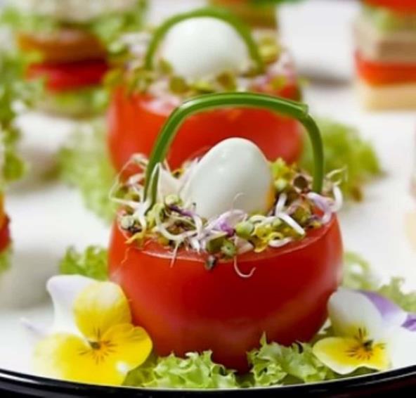 Ako na svečanoj uskršnjoj trpezi želite da poslužite nešto drugačije, naš predlog su paradajz gnezda. Ovako pripremljenopredjelo ne samo da je ukusno, nego i toliko dobro izgleda, a nećete utrošiti puno vremena ni truda. Možda deluje komplikovano, ali sve što treba da uradite jeste da napunite paradajz ukusnim i jednostavnim nadevom, dekorišete jajima i začinskim biljem. Uživajte!