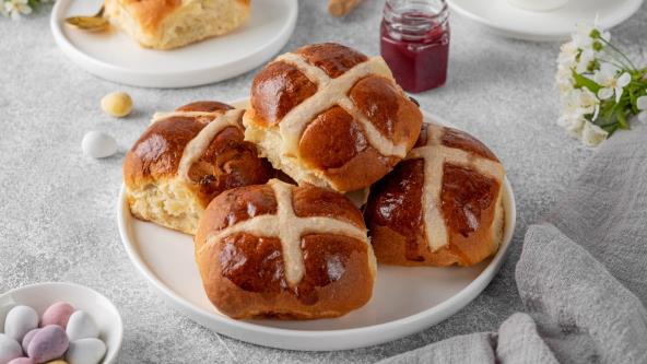 Uskršnje slatke zemičke sa suvim grožđem predstavljaju jedno od najprepoznatljivijih peciva iz engleske tradicije, koje se vekovima priprema upravo u prazničnom periodu. Njihov karakterističan izgled sa tanko iscrtanim krstom na površini nosi simboliku, dok bogata, mirisna unutrašnjost pruža pravi užitak pri svakom zalogaju.