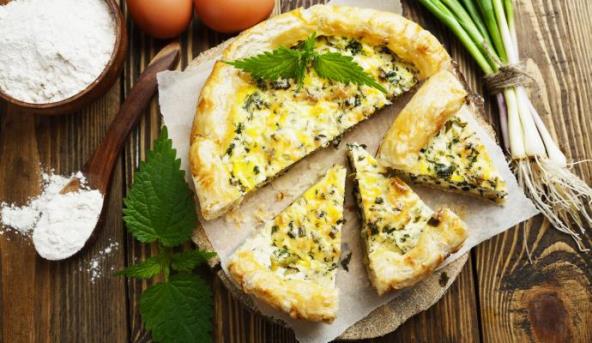 3. U činiji izmešajte sir, oceđenu blanširanu koprivu, jogurt i jaja. Sve posolite i pobiberite po ukusu. Isečene kockice hleba umešajte u smešu sa sirom.