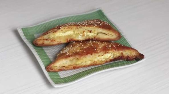 Nakon toga nanosimo fil od sira preko testa, pa preklopimo testo. Malo ga zasečemo tacnom,tako da dobijete trougliće, kao što možete videti u videu ispod.