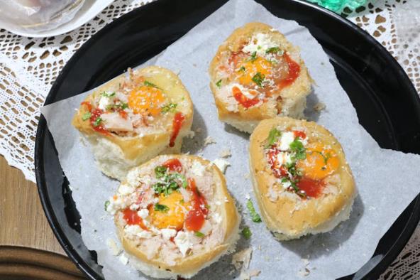 Izdubiti kajzerice, pa staviti malo sira, šunke, kečapa i na kraju jedno jaje.