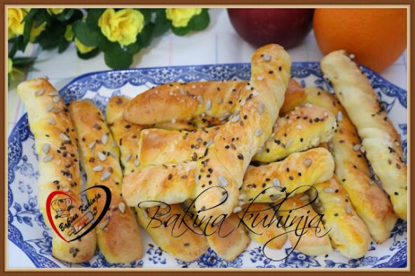 Ostaviti da malo odmori pa razviti na cm debljine, seći štapiće i uvijati.