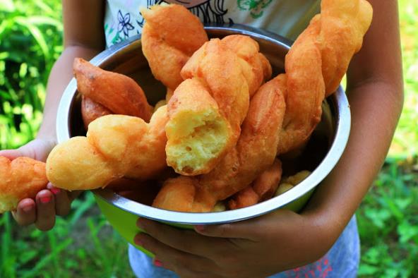 Izmešajte kvasac sa mlakim mlekom i šećerom, dodajte ulje, jaja, sir. Izmešajte dobro pa dodajte brašno, so. Zamešeno testo ostavite da odstoji 30 minuta, premesite ga, razvucite oklagijom pa isecite trakice, uvijte u pletenicu. Zagrejte duboko ulje pa pržite sa obe strane dok fino ne porumene. Vruće dodatno posolite, možete ih premazati belim lukom. Poslužite uz jogurt, kiselo mleko, hladnu salatu od jogurta, krastavaca i mirođije...uz ručak, doručak..na izlet, plažu..