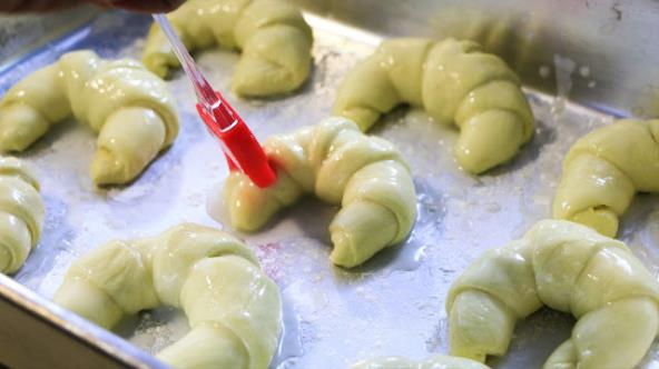 Prokuvajte vodu, so i brašno pa vrelim premažite nadošle kiflice. Pecite oko 30 minuta. Pečene prekrijte krpom, ako želite da imaju sjaj premažite hladnim premazom u tankom sloju.